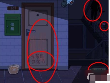 1、初始场景需完成七处交互操作:锈蚀的信箱表面留有特殊划痕、断裂刀具边缘呈现非自然缺口、散落的手提包呈现异常开启状态、倾覆的馄饨碗残留温度信息、门框处的划痕深度显示多次刮擦痕迹、地面白色标记线暗示空间划分、变形的猫眼装置存有粘性物质残留。每个细节都对应着后续推理的重要线索