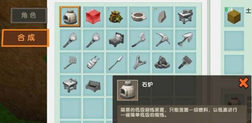 4、完成石炉制作后,长按屏幕将其放置于平整地面。注意选择背风区域搭建,避免后续熔炼过程受环境影响。点击激活石炉界面时,建议预留3格以上的操作空间。