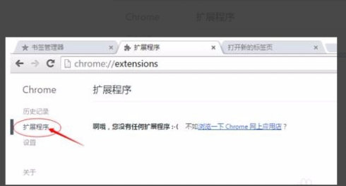 4、在设置侧边栏选择"扩展程序"管理模块,此处可查看所有已安装的浏览器插件。建议定期在此界面更新插件版本,以获得最佳兼容效果。