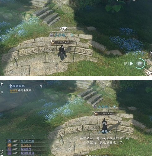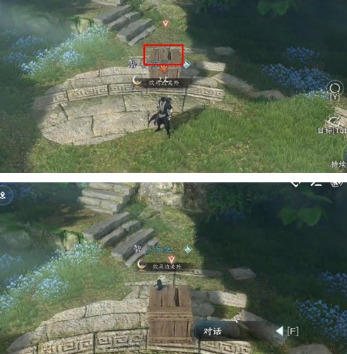 抵达目标区域后,玩家将发现刻有奇异符文的陈旧木箱。靠近时需长按互动键激活特殊对话,此时会触发连续剧情动画。值得注意的是,选择不同对话选项将影响后续奖励类型,建议优先选择「探查异响」与「询问身份」两个关键选项。