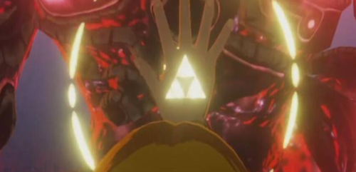 4、受创的灾厄加侬力量大幅衰减,林克抓住时机祭出驱魔圣剑,配合塞尔达觉醒的三角神力,黄金光辉与神剑锋芒交织成终结黑暗的必杀之击;