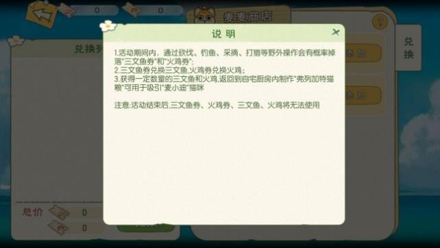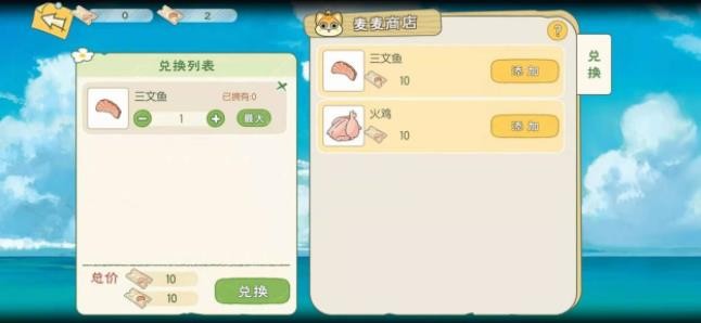 玩家需前往海街区域的生活馆入口处,与特殊NPC小猫麦麦展开互动。在兑换界面中将看到明确的任务需求:提交10张三文鱼卷和10张火鸡卷即可兑换关键道具。界面右上角的提示图标可查看详细的任务指引,建议玩家优先熟悉物资获取途径。