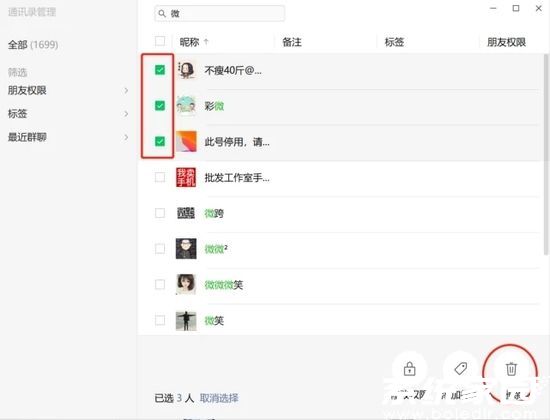 相比少人的微信都添加了很多只有聊过几句话的好友,可能是某次做活动添加的。但是一个个删除会显得很麻烦,那么该怎么批量删除这些“陌生人”呢?我们可以通过电脑版的微信,打开通讯管理设置,之后你就能看到批量删除的选项了,勾选那些想删除的即可。