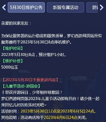 所有在5月30日12点前创建角色的玩家,可通过邮件领取5000仙玉维护补偿,该奖励自动到账无需手动领取。