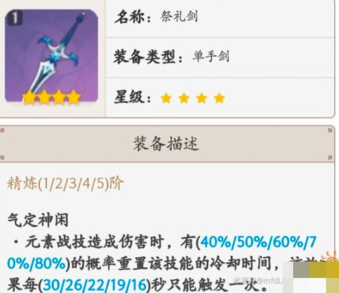 (3)与五星武器的对比中,精1祭礼剑在充能维度优于多数五星武器。