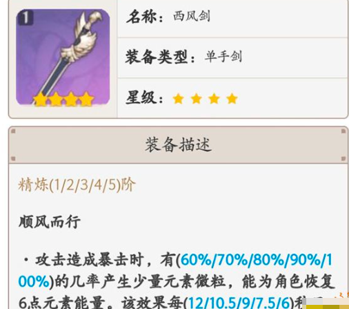 2.充能不足时选择西风剑优化团队能量循环