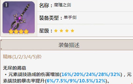 (1)全四星武器中白值攻击力最高,适合元素反应覆盖率高的配队环境;