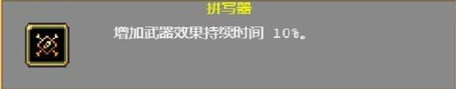 拼写器作为关键合成组件,其核心功能在于延长武器效果持续时间。当与亡灵之书组合使用时,可使旋转书本的存续时间延长35%,显著提升清怪效率。建议优先升级该道具至满级以激活最大增益。