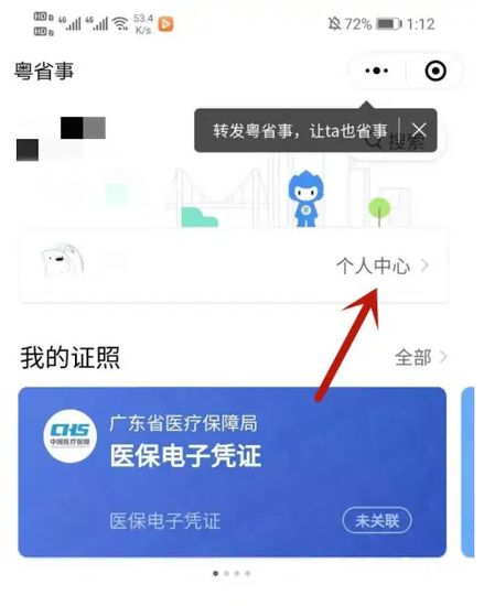 1、启动移动设备中的粤省事应用,确保已登录需要修改信息的账号。若使用微信小程序版本,可通过微信搜索栏直接进入官方小程序界面。