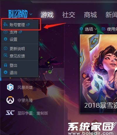 客户端启动后,注意界面右上角的账户名称下拉菜单。点击展开后选择"账户管理"选项,此时系统将通过默认浏览器跳转至暴雪官方安全验证页面。