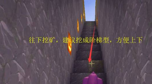 ②采用螺旋阶梯法向下推进,每下降五格构建平台并设置火把照明。这种立体作业结构既能保障安全移动,又可有效探查各层矿脉分布。
