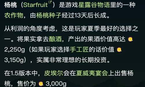 3、夏季种植的杨桃在基础状态下单果售价750金,经小桶发酵为陈酿后价值跃升至2250金。若采用温室搭配加速肥料进行全年培育,单株年产量可达12季,配合批量酿造可使单个橡木桶日均产出达75金,显著超越其他常规经济作物。