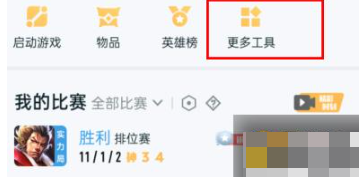 3. 切换至软件底部导航栏的「战绩」面板,在功能扩展区找到「更多工具」入口。该模块集成了战绩分析、对局复盘等进阶功能,需保持客户端为最新版本才能完整显示所有选项。