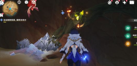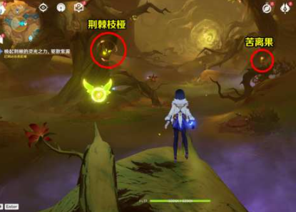 (2)采集苦离果能量:操控斯露莎靠近发光植株获取投掷物充能
