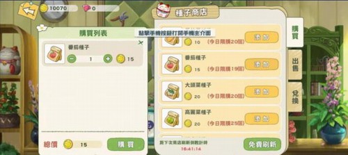 进入商铺交互界面后,选择农产品交易选项即可浏览种子目录。番茄种子通常位于初级作物分类中,建议新手玩家优先购买5-8组备用。需注意商铺设有每日限购机制,合理规划采购数量尤为重要。