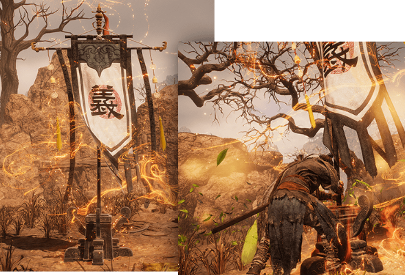 地图中分布的牙旗(主据点)与旌旗(隐藏标记)构成战略网络。每激活一面旗帜可提升不屈等级,此数值直接影响角色重生时的基础战力,建议探索阶段优先点亮所有旌旗。