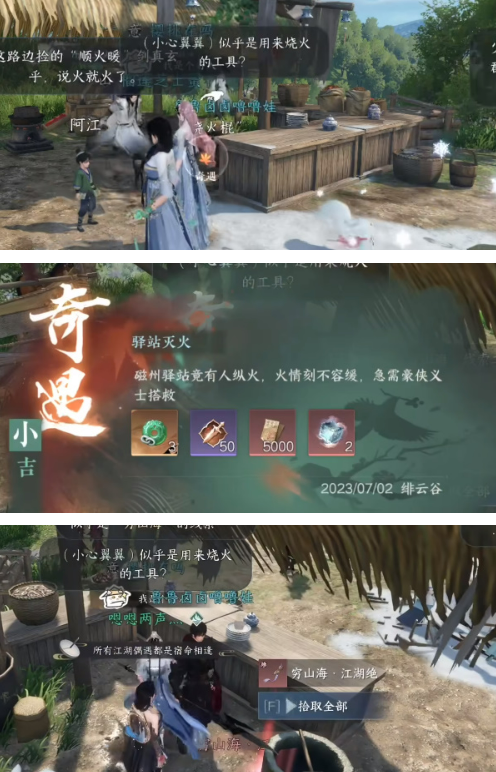 5、最终线索隐藏在驿站南侧古道旁。从救火坐标沿山路下行约120步,在古槐树根系交汇处可发现被碎石掩埋的第三个秘藏宝箱。