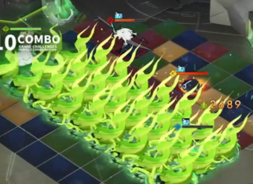 连锁技「影棘」根据连锁数呈现阶梯式强化效果:四连锁时对两格范围内三个目标造成165%攻击伤害,八连锁提升至170%并扩大打击范围,十二连锁时能在三格范围内对四个敌方单位施加180%的群体伤害。这种范围递增机制使弥加德在面对复数敌人时能保持高效清场效率,尤其在处理精英怪集群时优势显著。