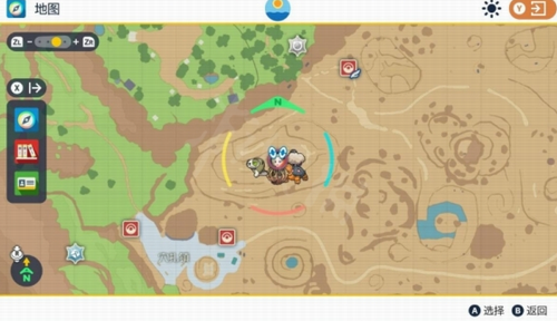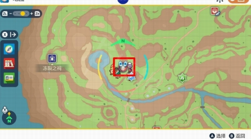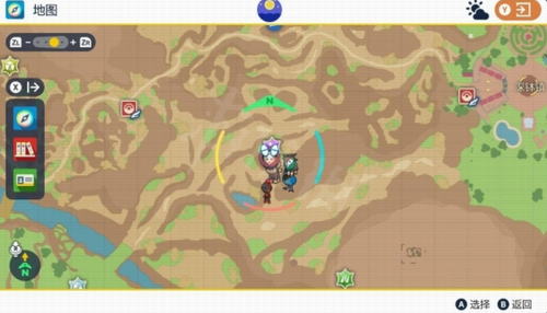 首要获取坐标位于穴扎镇东北方向的特殊地形区域。从城镇出口向东北方行进约500米,可见一处凹陷的岩层结构。训练师需沿斜坡下行至底部平台,在碎石堆与岩壁交界处仔细搜寻即可发现(参照下方方位示意图)。建议携带具有碎岩能力的宝可梦同行,可清除路径障碍提升探索效率。