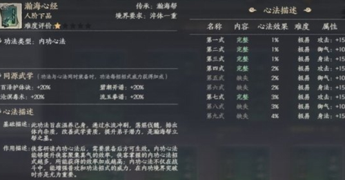 3、伤害增益体系:心法提供的伤害加成具有全域生效特性。当少侠同时修习《焚天诀》与《烈阳刀法》时,不仅火系武学威力提升,所有普攻都会附加灼烧效果,这种复合增益是其他功法无法实现的。