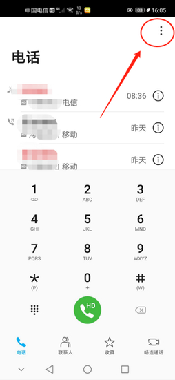 在拨号界面右上方区域可发现由三个竖直圆点组成的扩展菜单标识。点击该图标后,系统将展开二级功能菜单,此时需选择带有齿轮图标的「通话设置」选项。部分机型可能直接标注为「设置」,用户可根据界面提示准确操作。