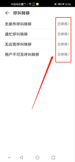 在呼叫转移配置页面,用户可看到包括无条件转接、遇忙转接、无应答转接等多种模式。每个转接类型都对应独立开关控件,需要逐项检查并将所有启用状态的选项调整为关闭模式。操作时注意确认每个子项的状态指示灯由亮变暗,确保完全停用服务。