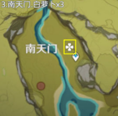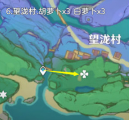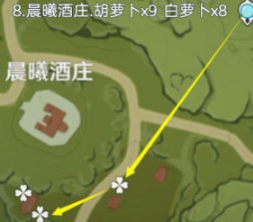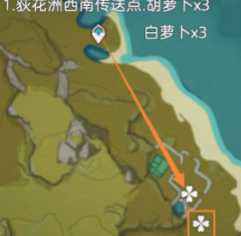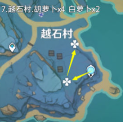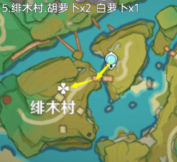 4单位胡萝卜与2单位白萝卜呈阶梯状分布,建议使用岩属性角色创造采集路径提升效率。
