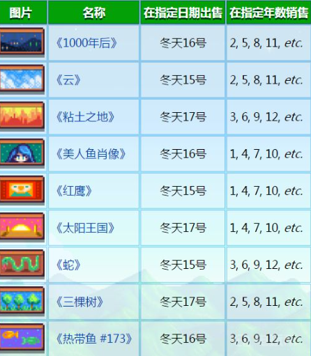 艺术收藏爱好者不可错过每日更新的画作展览。传奇画家卢皮尼将携九幅精心绘制的作品轮番亮相,每幅作品均对应不同季节主题。需注意这些艺术珍品按三年周期循环展出,单幅售价1200金币。建议优先选购第一年出现的三幅画作,可大幅缩短博物馆捐赠进度。